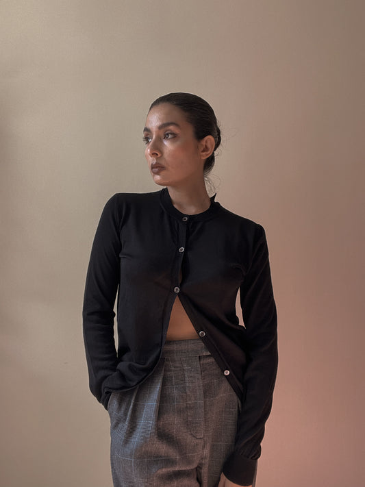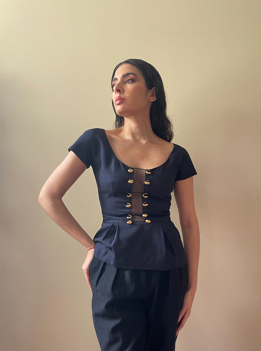 Vintage Designer Valentino 90s Navy With Mesh Panel Peplum Top