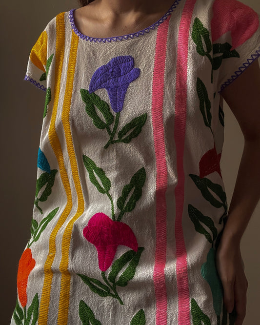 Vintage Hand Dyed Brown Cotton Crochet Dress