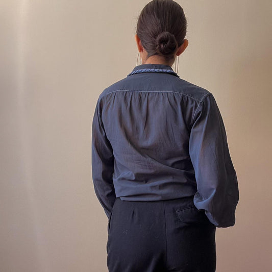 Vintage Hand Dyed Navy Tuxedo Cotton Top
