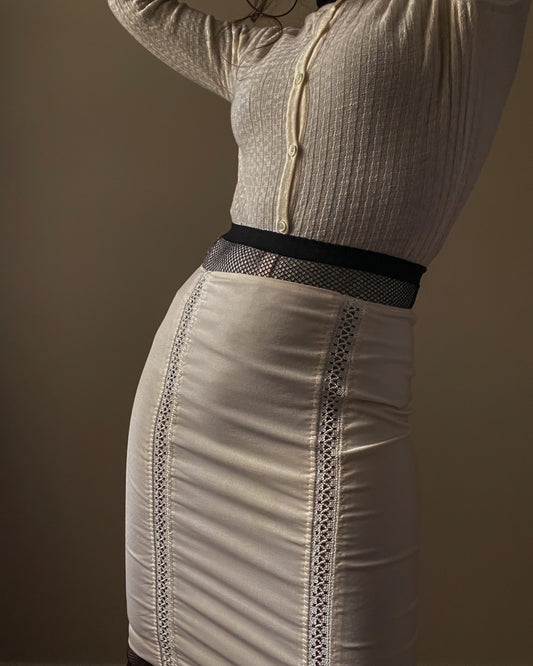 Vintage Designer Gianni Versace Cream Embroidered Trim Skirt
