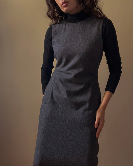 Vintage Designer Calvin Klein Collection Grey Wool Dress