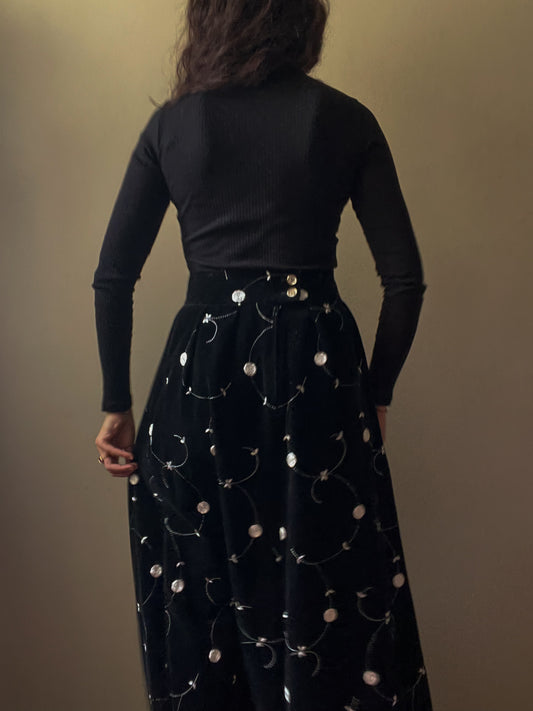 Vintage Designer Celine Black Velvet High Waist Skirt