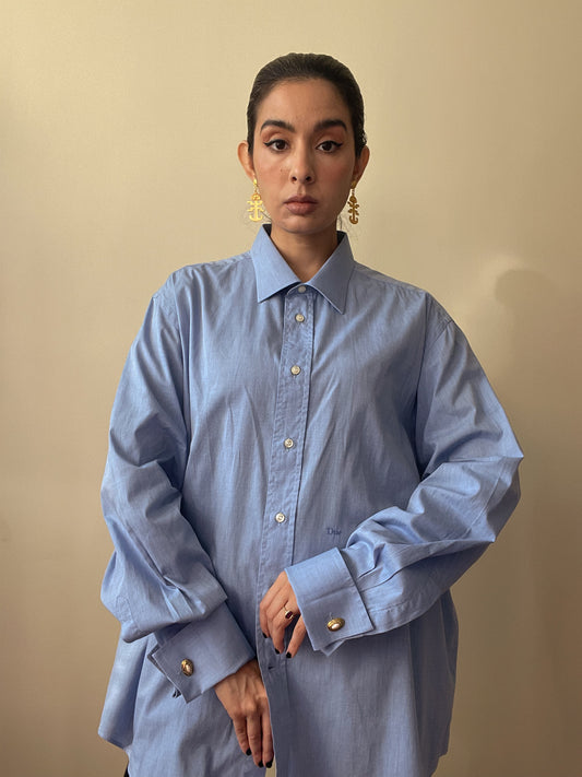 Vintage Designer Christian Dior Blue Cuff Link Shirt
