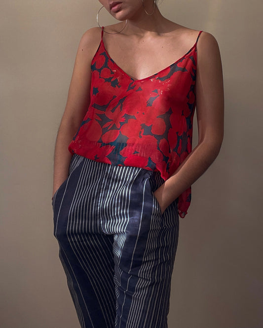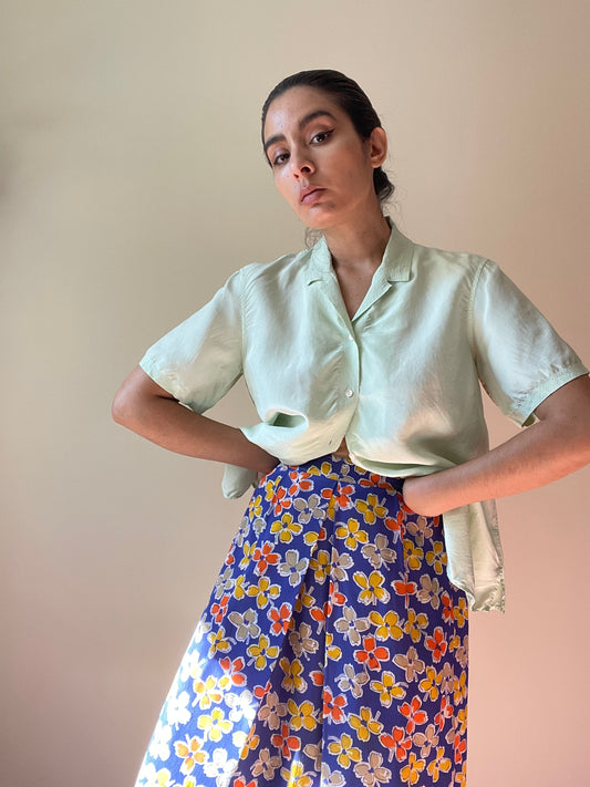 Vintage Designer Jil Sander Green Boxy Stitched Silk Top