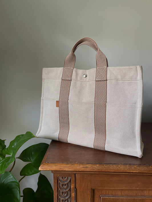 Vintage Designer Hermès Cotton Canvas Tote Bag