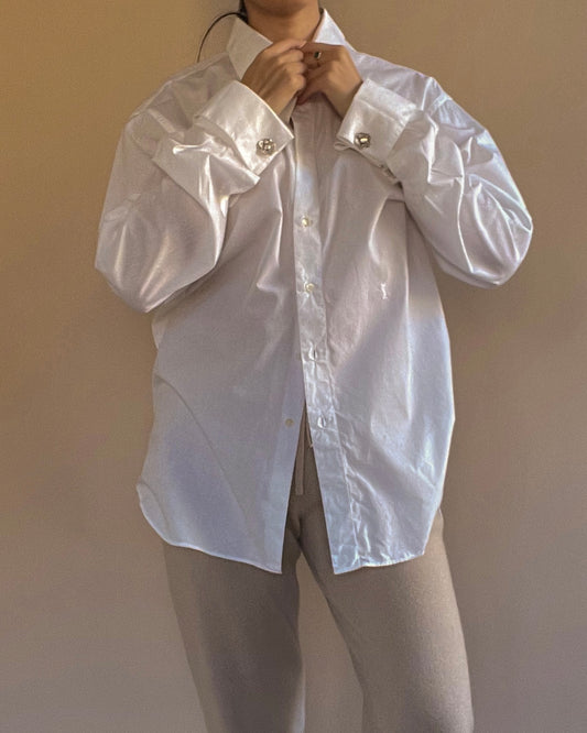 Vintage Designer Yves Saint Laurent Cotton Top With Cufflink Sleeves