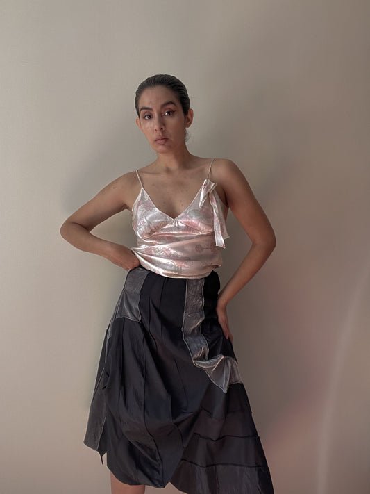 Vintage Designer Armani Cream Satin Silk Ruched Top