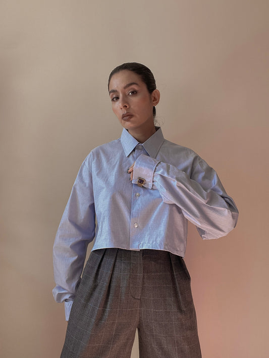 Vintage Blue Cotton Cropped Cufflink Shirt