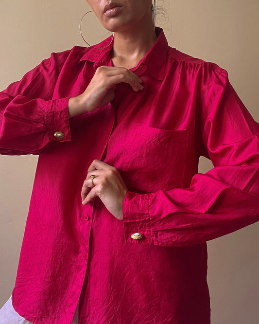 Vintage Designer Luisa Spagnoli Gold Satin Silk Top