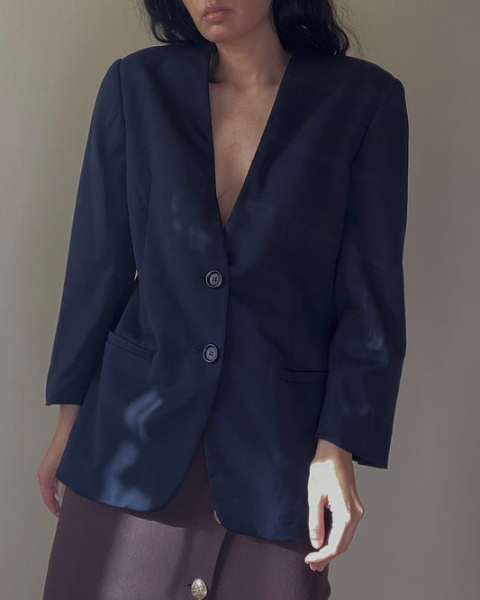 Vintage Designer Armani Oversized Navy Linen Blend Blazer