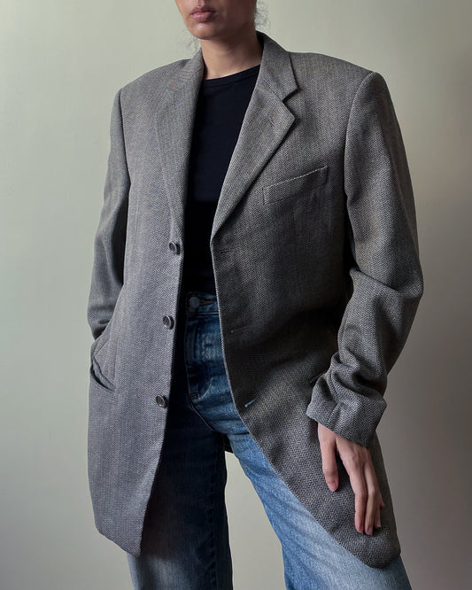 Vintage Designer Armani Oversized Warm Grey Wool Silk Blazer