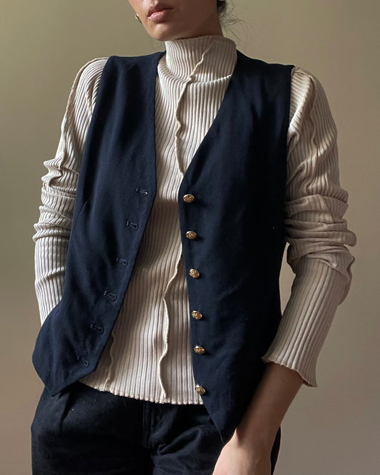 Vintage Designer Lauren Ralph Lauren Navy Wool Suiting Vest