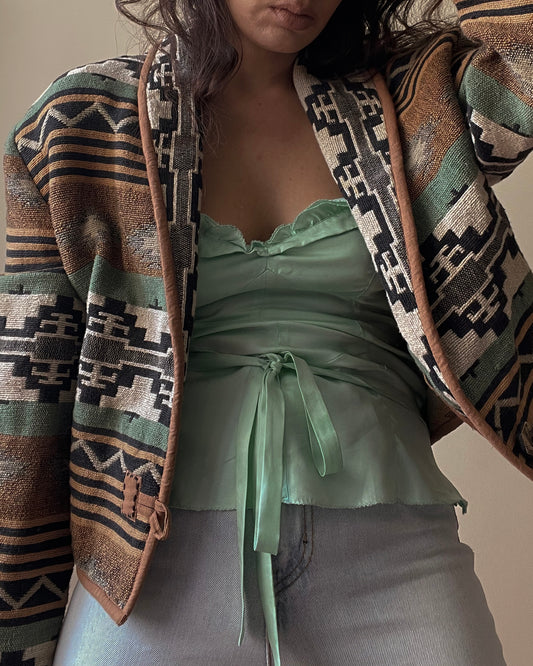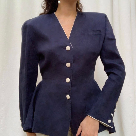Vintage Designer Rocco Barocco Navy Peplum Linen Top Jacket