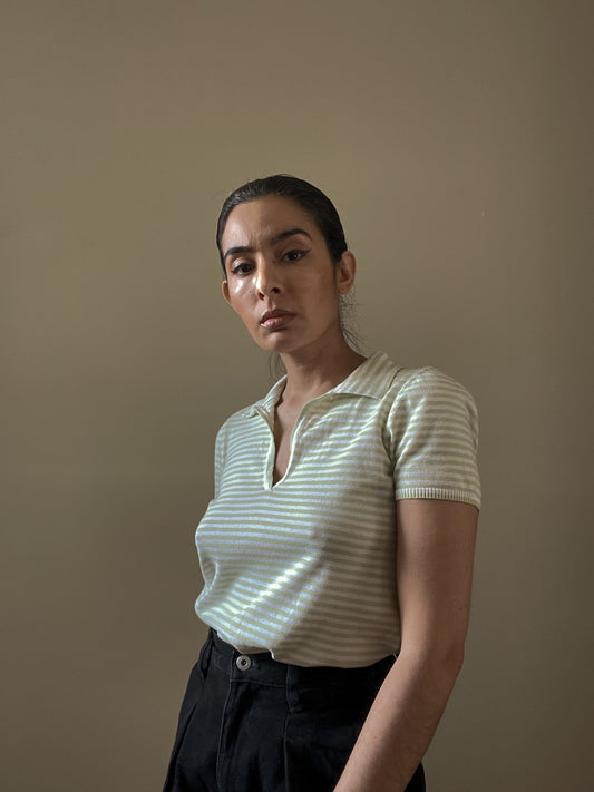 Vintage Brand Henri Bendel Green Short Sleeve Knit Cotton Polo