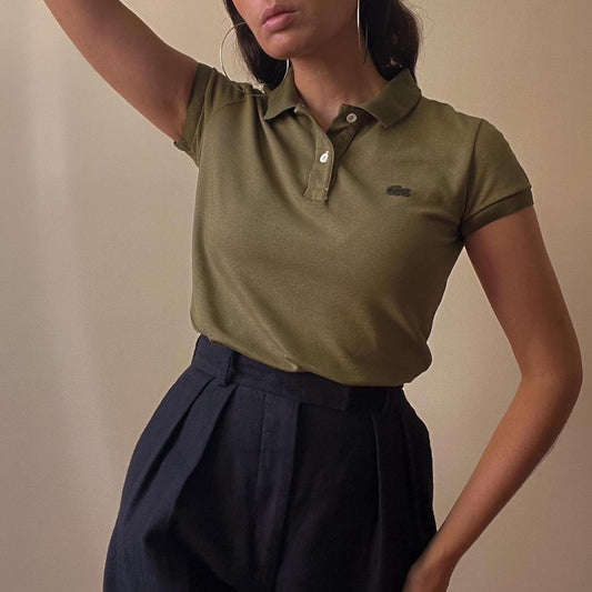 Preloved Brand Lacoste Hand Dyed Green Cotton Polo Knit Top