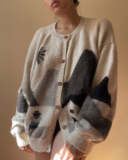 Vintage Peruvian Alpaca Scenic Knit Cardigan