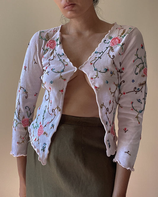 Vintage Designer Philosophy By Alberta Ferretti Embroidered Pink Cardigan