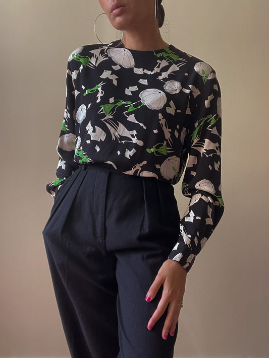 Vintage Designer Christian Dior Silk Print Top
