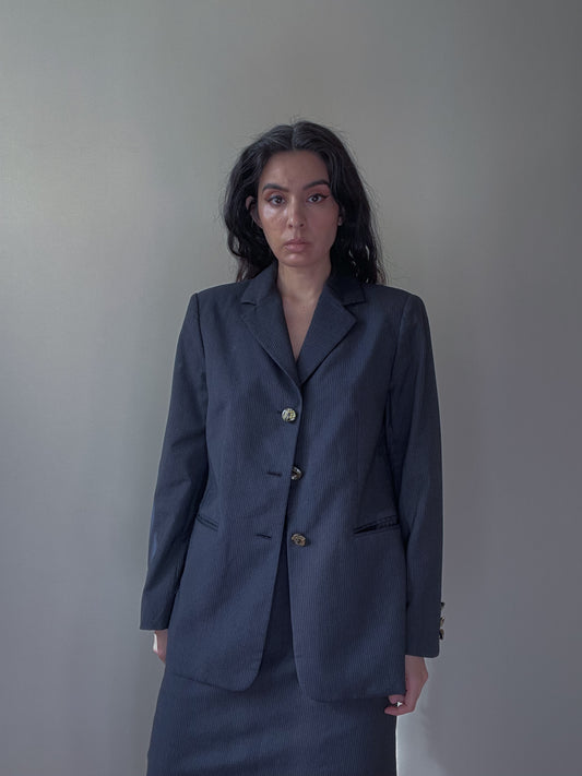 Vintage Designer Gianfranco Ferré Studio Navy Wool Stripe Skirt Suit