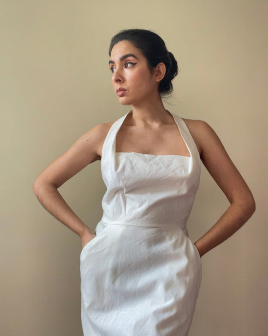 Vintage Designer Cathy Hardwick White Linen Blend Dress