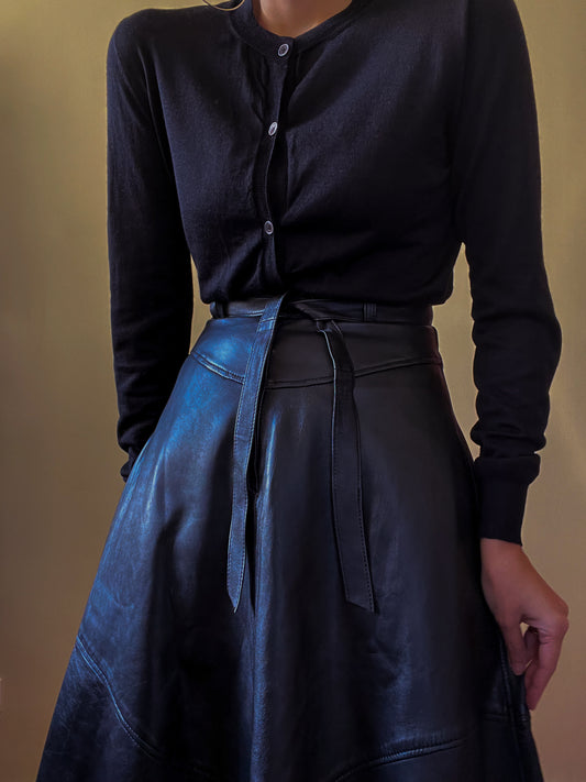 Vintage Black Leather Belted Skirt