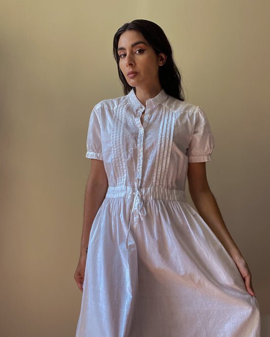 Beautiful Vintage Embroidered White Cotton Dress