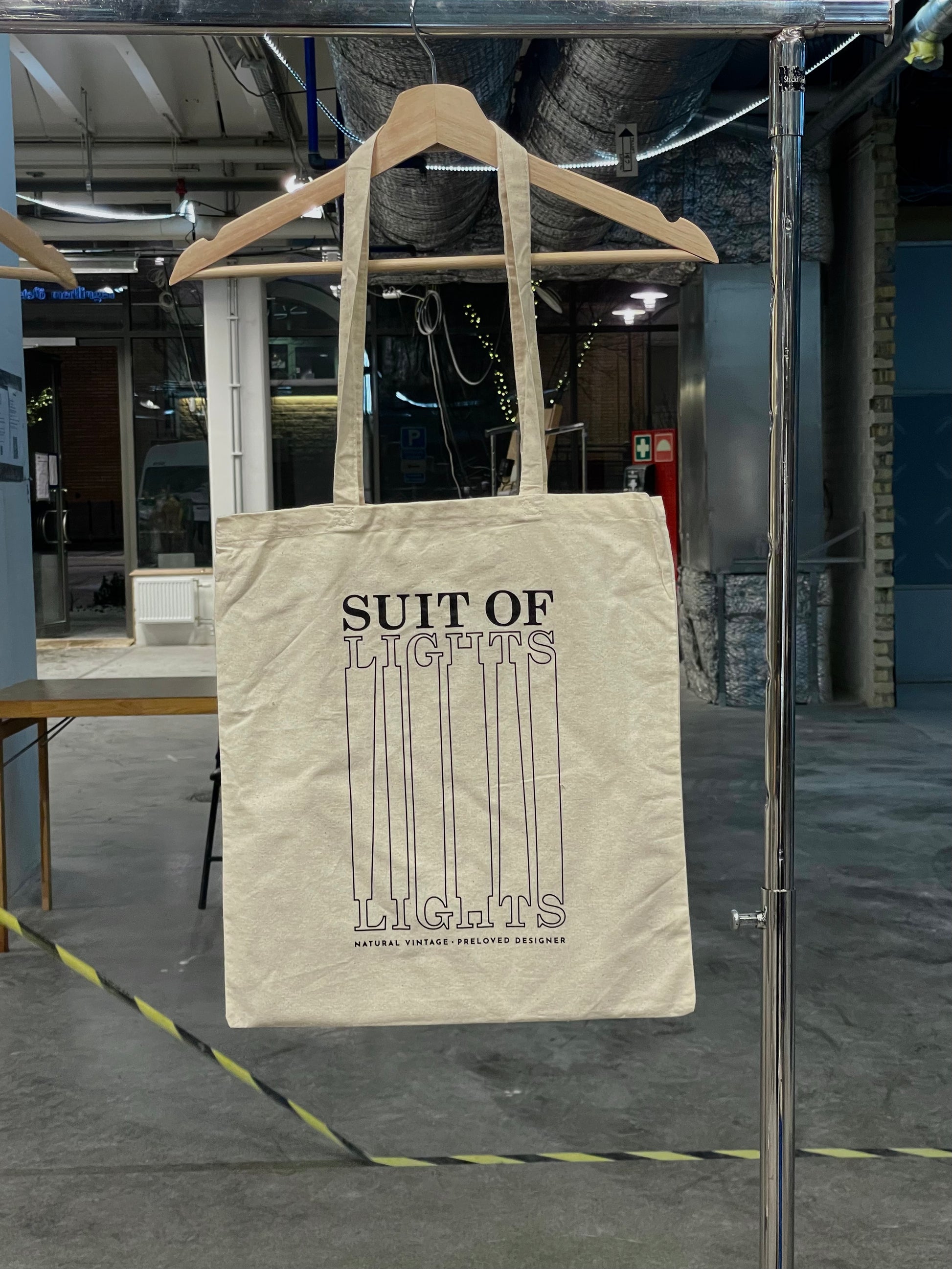 Our much-loved tote bag is made from a durable cotton canvas weave, featuring our signature Suit of Lights logo at front.