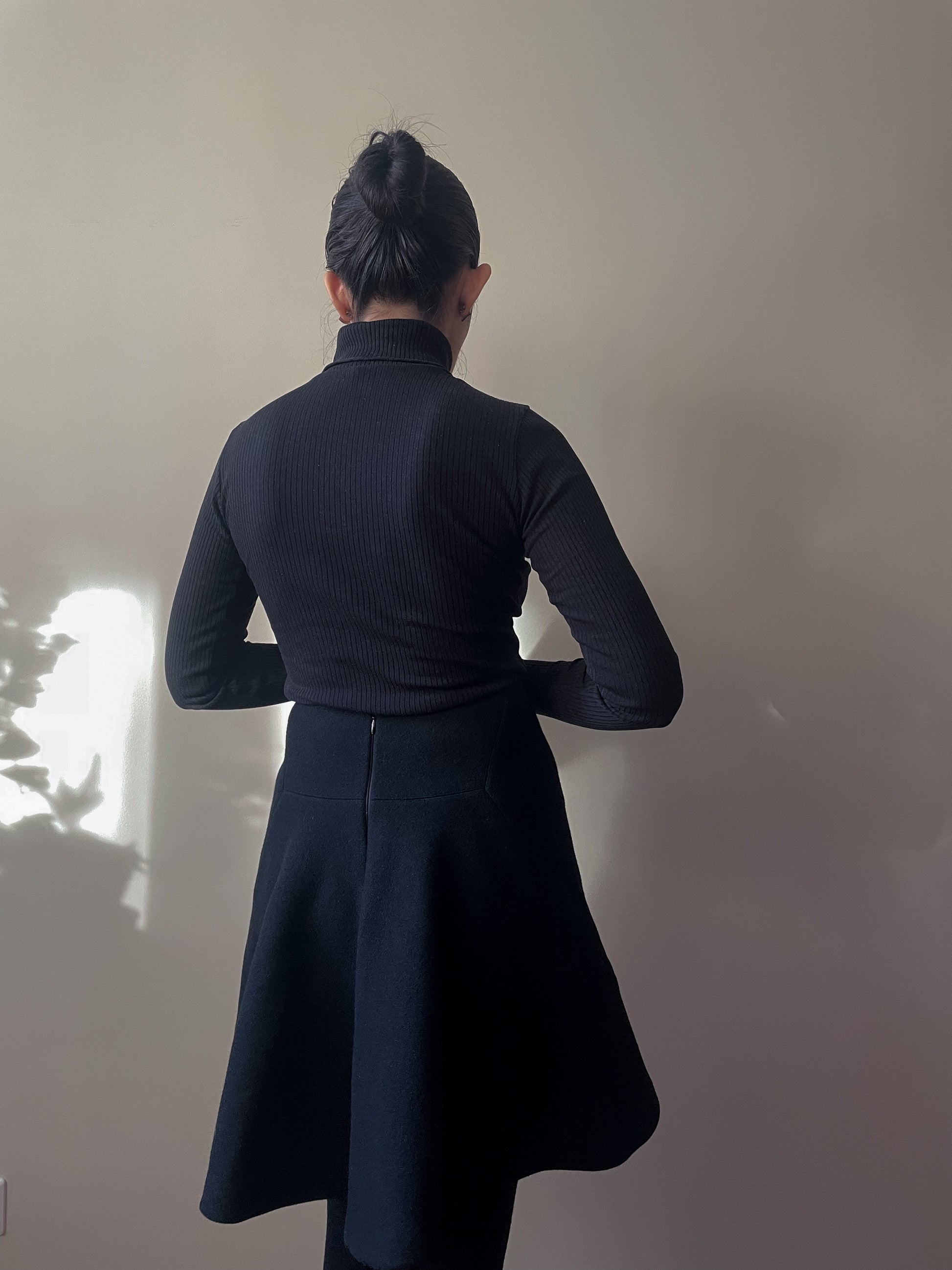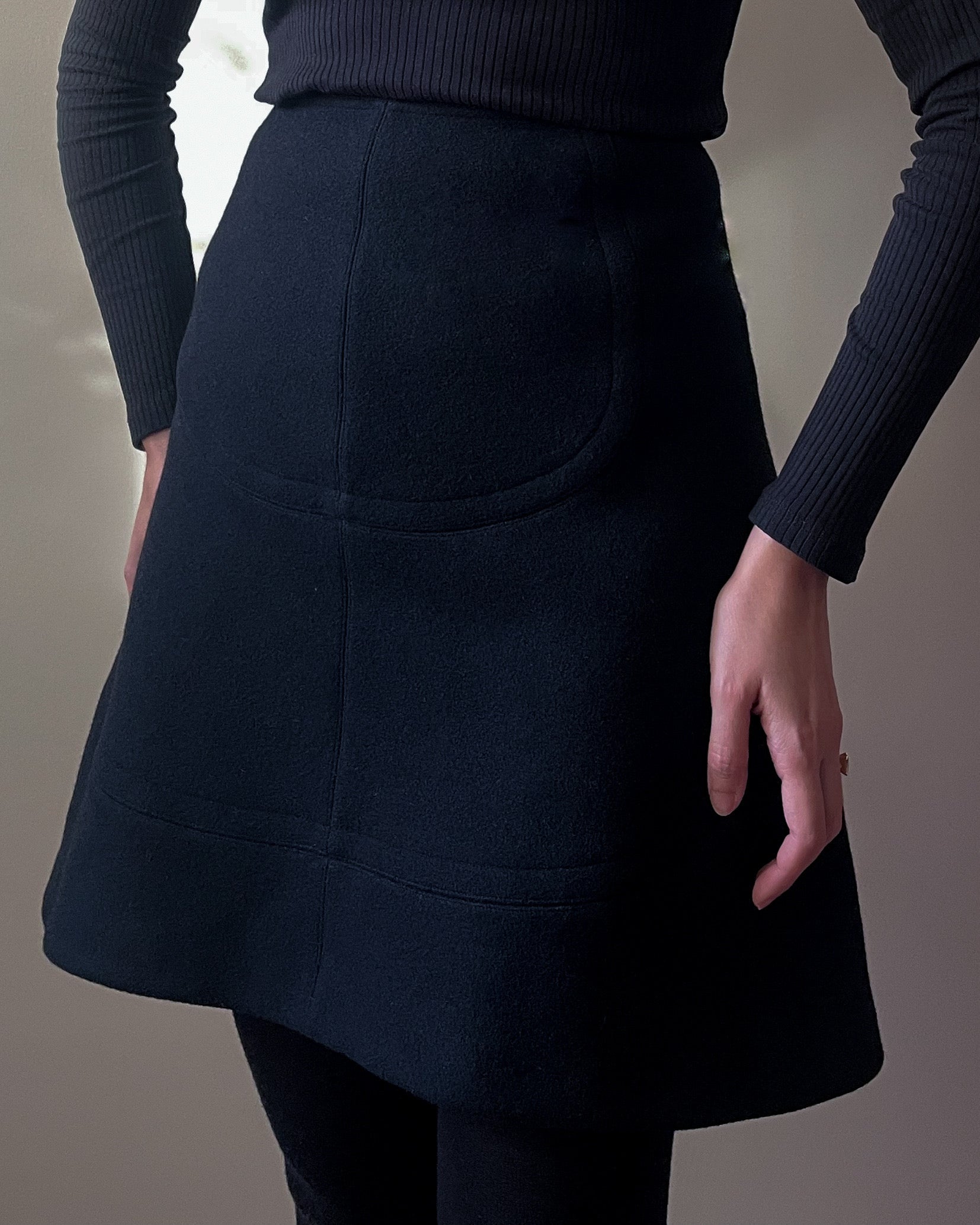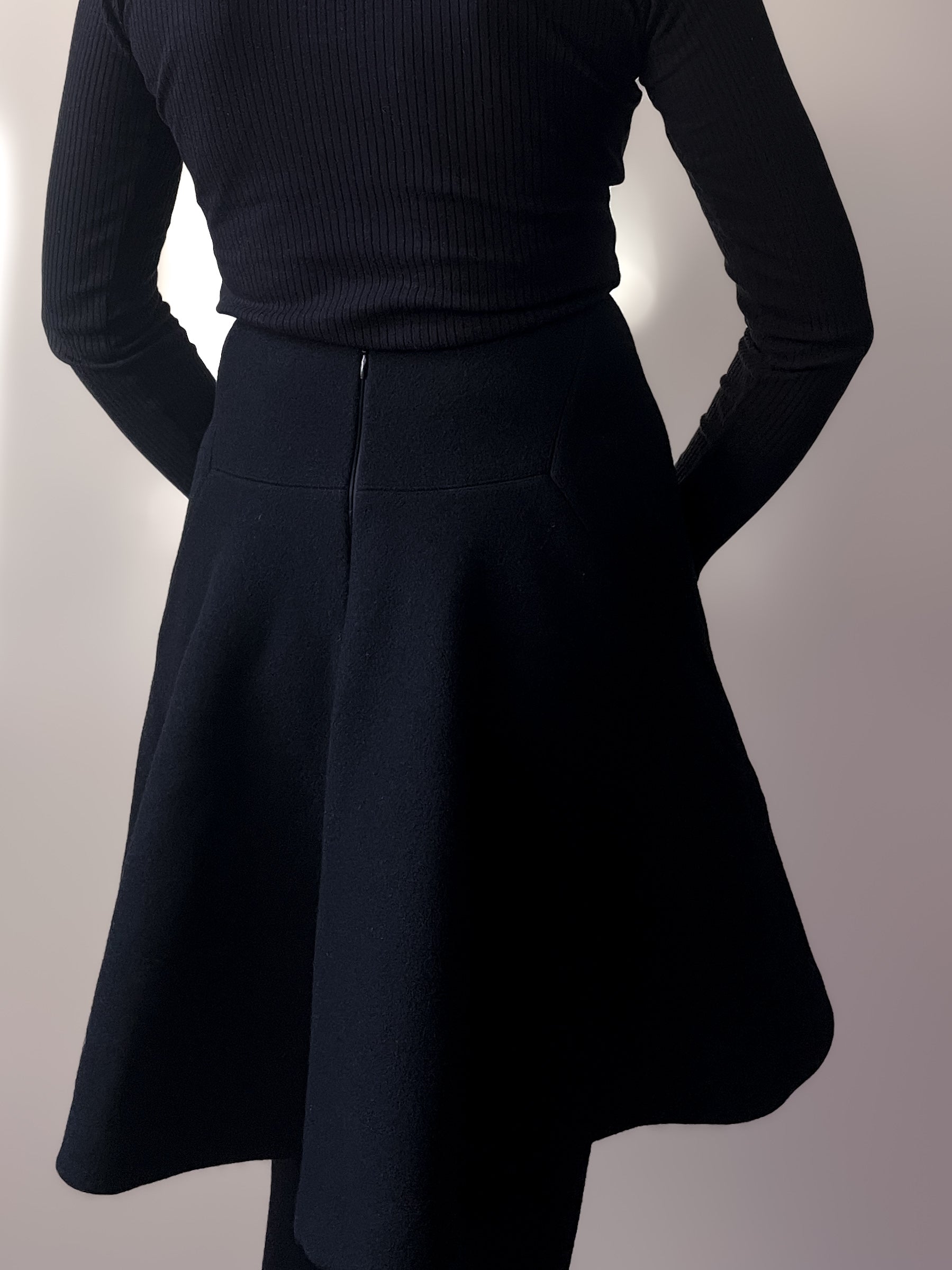 Vintage Designer Alaïa Black Wool Flared Skirt