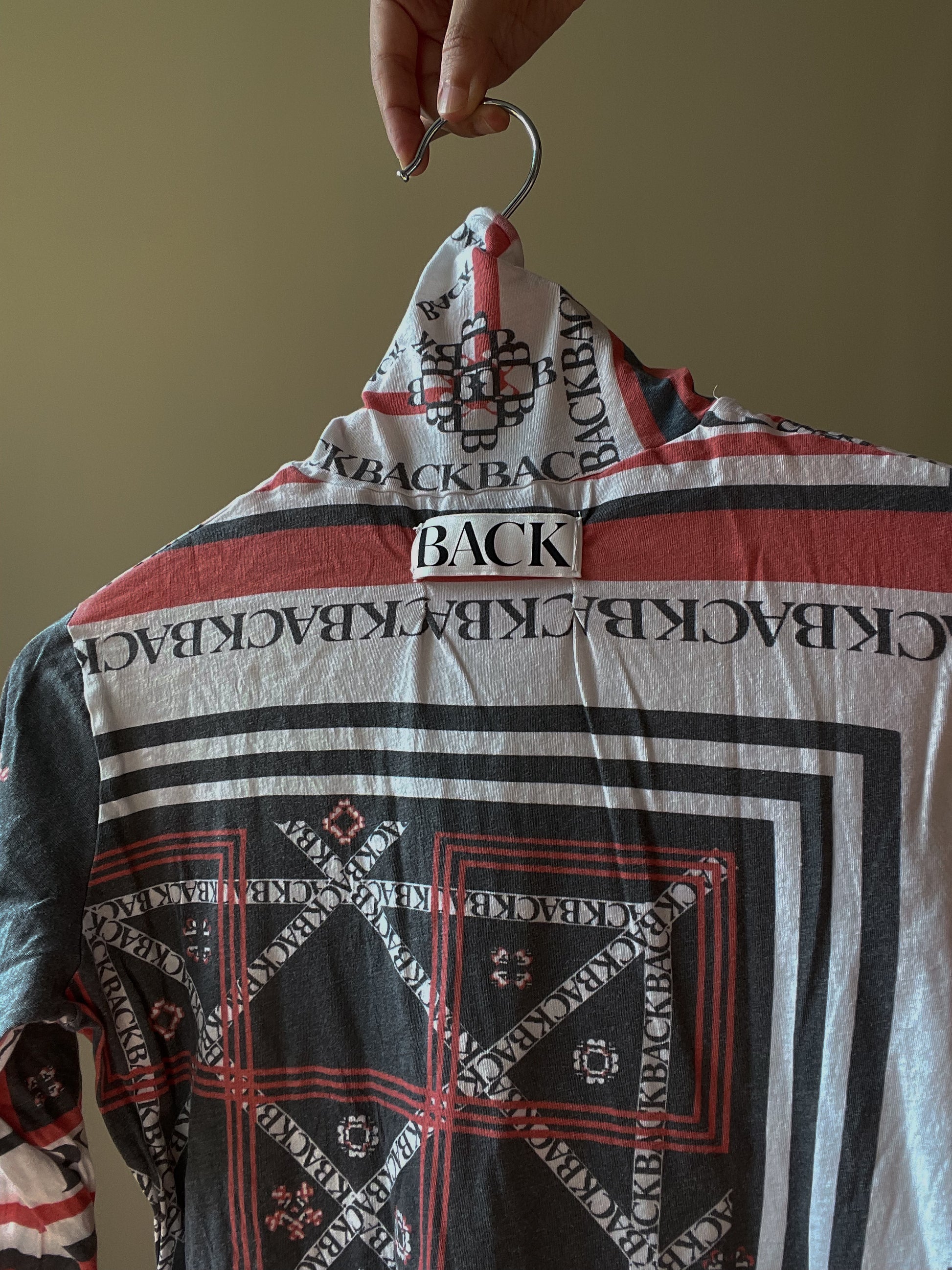 Designer Back by Ann Sofie Back 2015 AW Collection. All Over Graphic Print. Open Cut Shoulder Tie. Turtleneck has some signs of wear but overall Very Good Condition.Model is 160cm (5”3) and generally fits S/M.