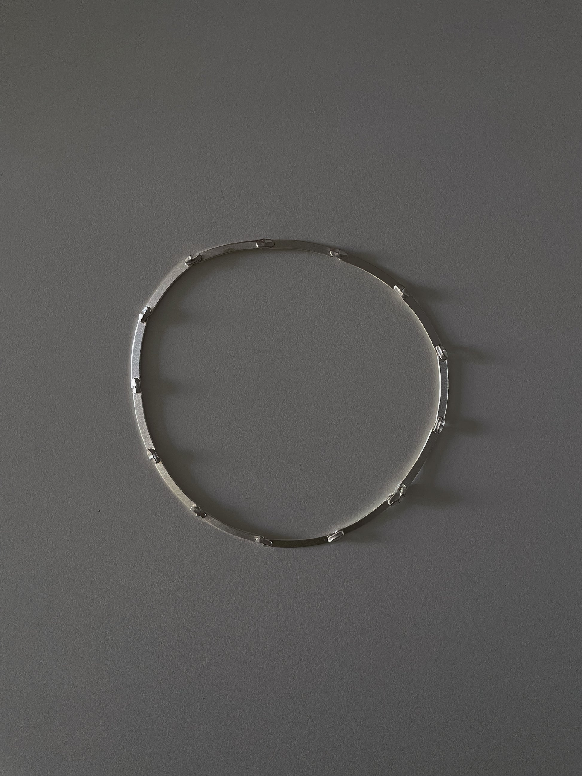 Björn Weckström is a Finnish designer who gained international recognition in the 60s and decorated the character Princess Leia in Star Wars (1977). His pieces reference natural elements and feels timeless. Vintage Designer Björn Weckstrom for Lapponia Sterling Silver Labyrinth Necklace. Year 2004. Clasp Closure. Frost Texturized Metal. Excellent Condition.
