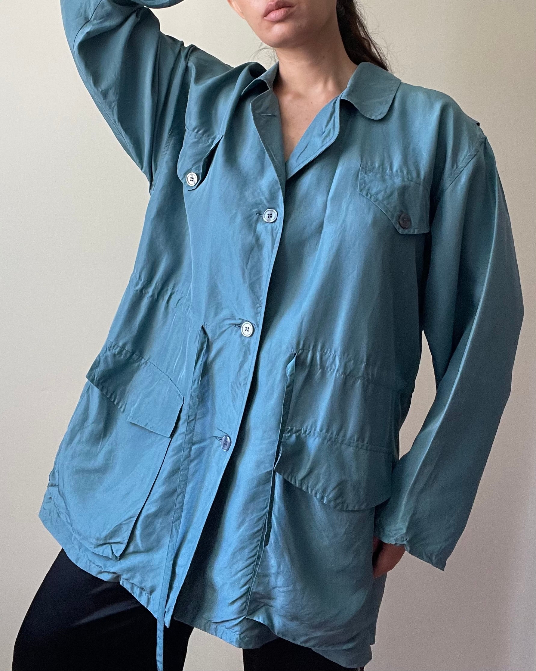 Branded Fantastic Girl, couldn't agree more. Vintage Silk Woven Windbreaker Jacket is a whole vibe. 100% Silk in a beautiful Teal Blue. Excellent Condition. Features Detachable Hood & Including Shoulder pads that can be resewn. Flap Frontal Pockets. Model Is 160cm (5”3) And Generally Fits XS/S.