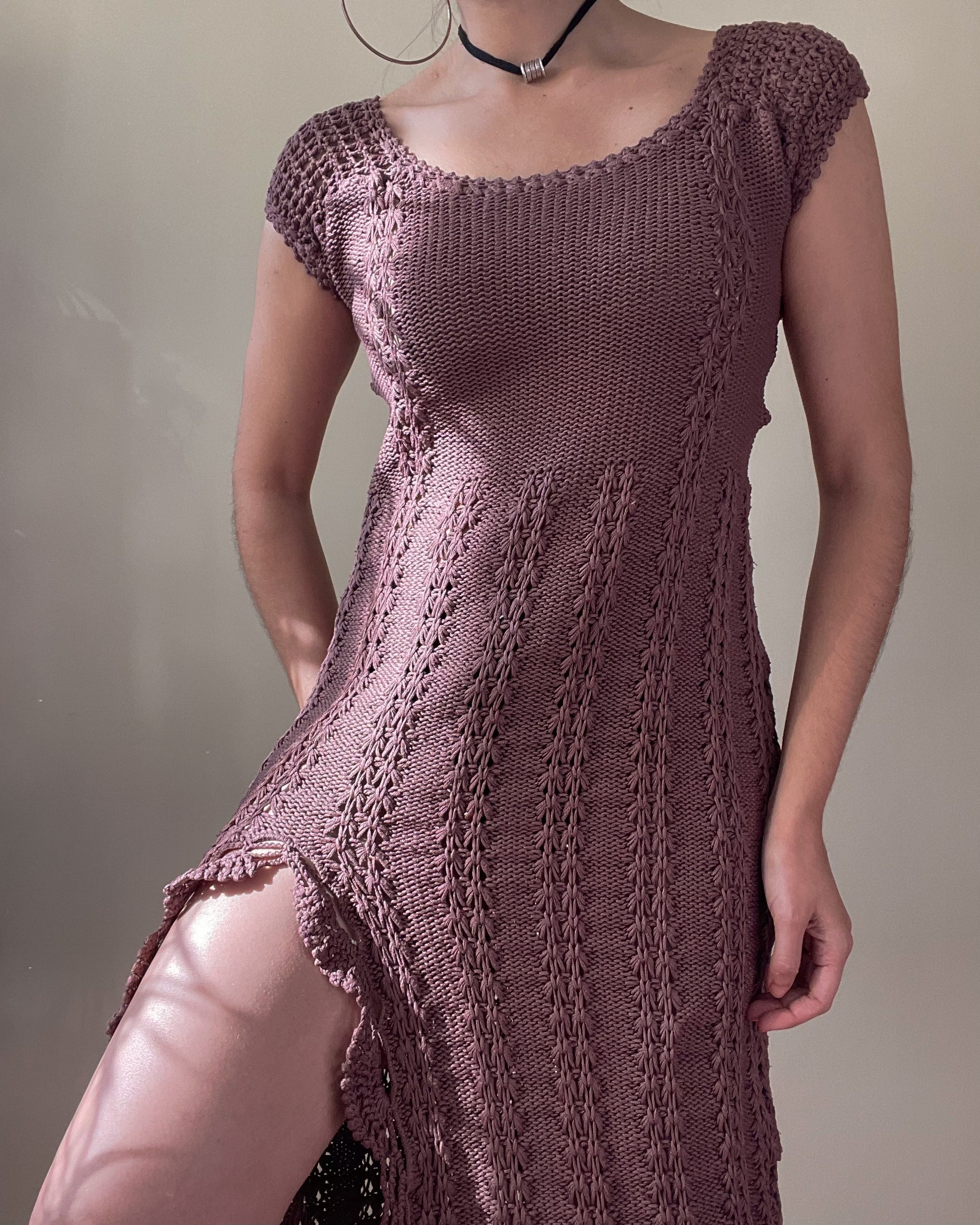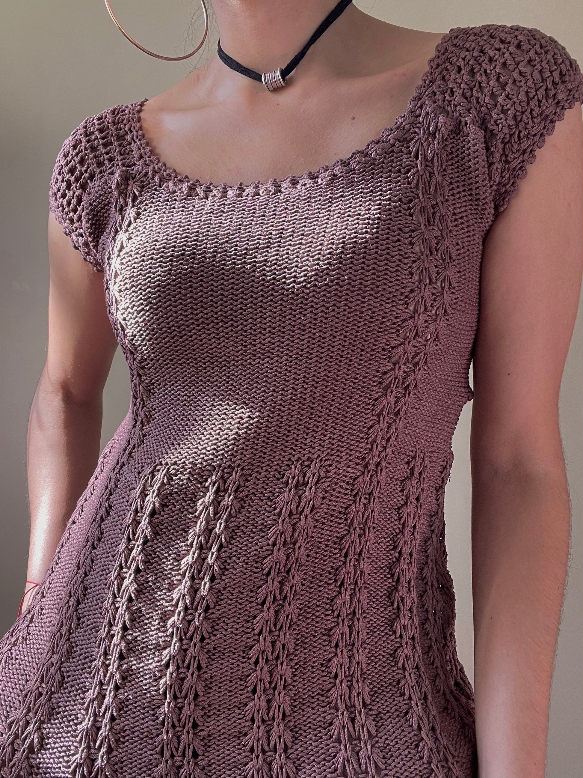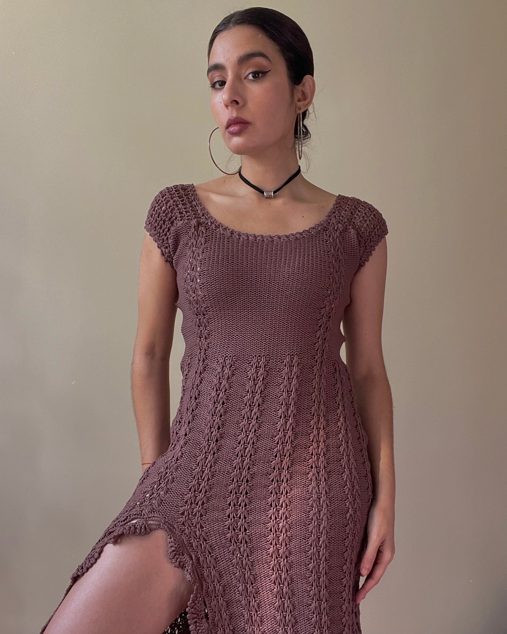 Vintage Hand Dyed Brown Cotton Crochet Dress