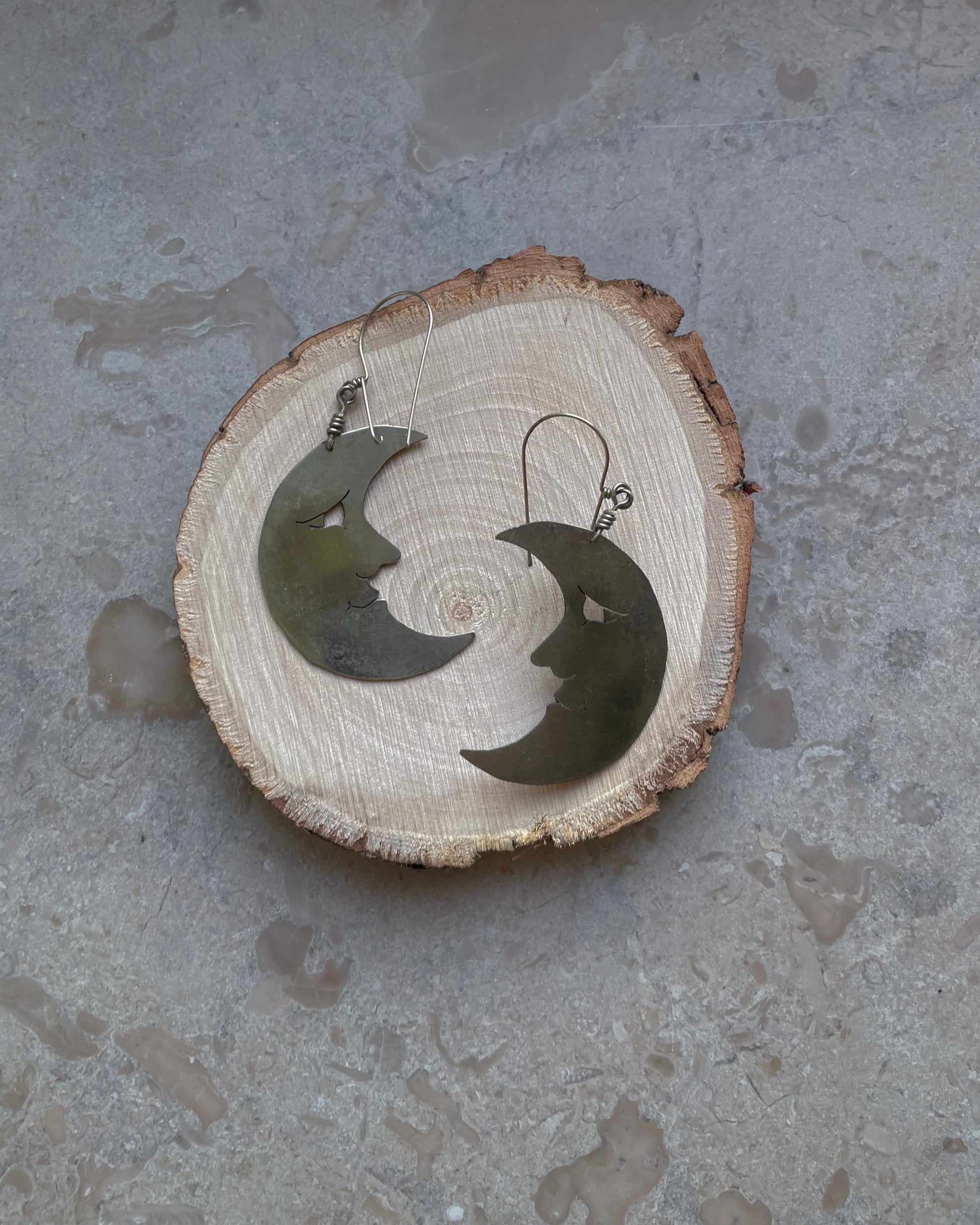 Artisanal Crescent Earrings crafted in Sterling Silver.