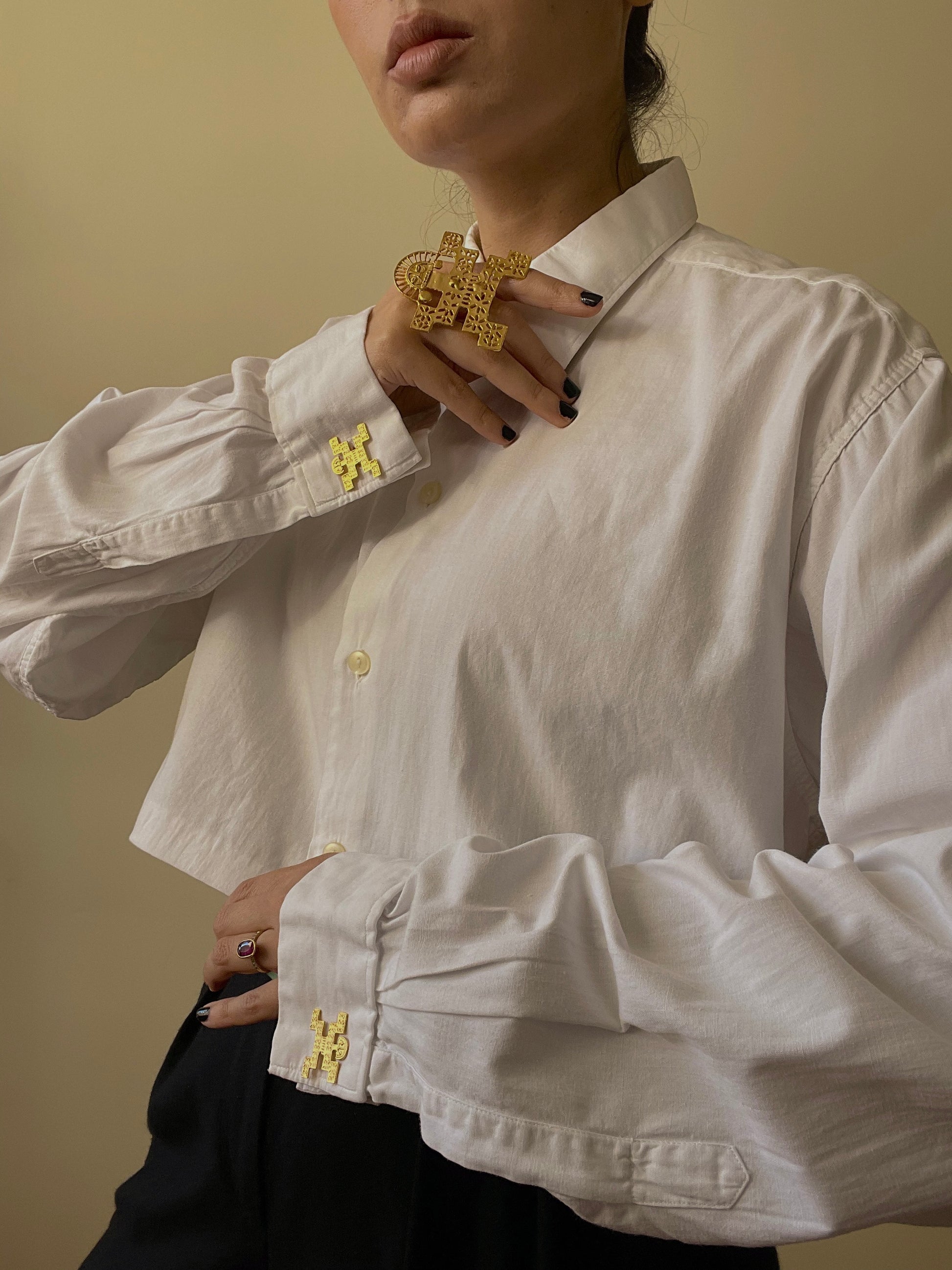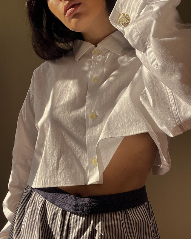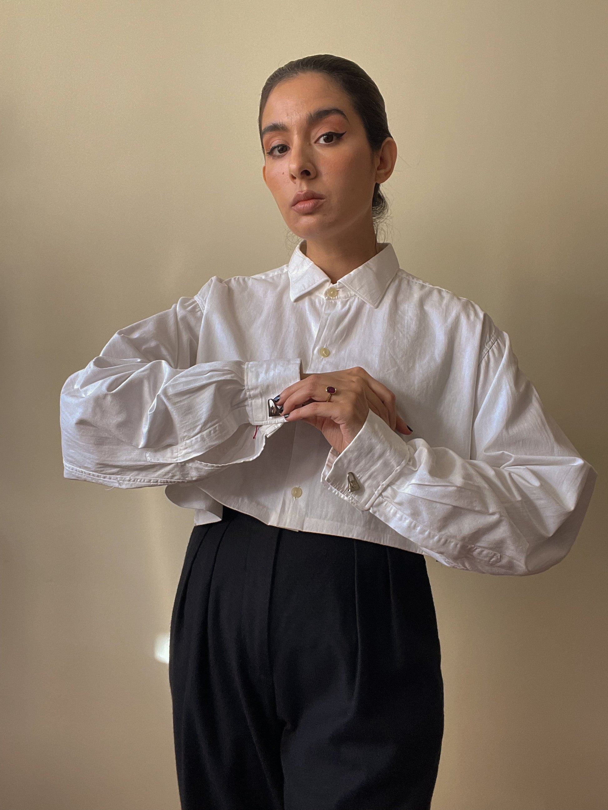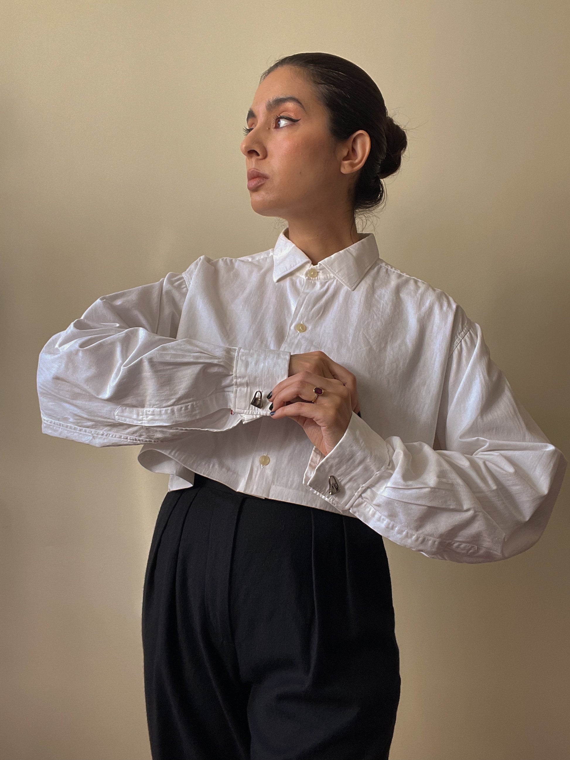 Vintage Collared Mens Dress Shirt With Cropped Hem stitched by Hand And Cufflink Sleeves.