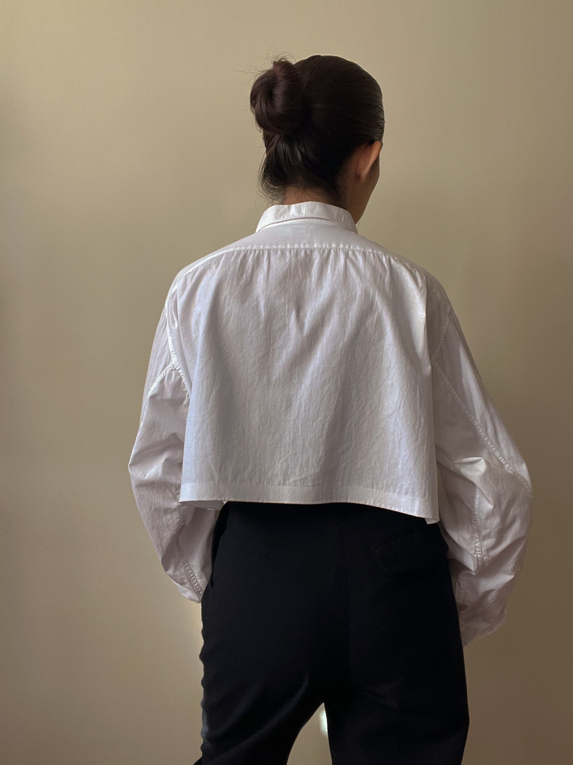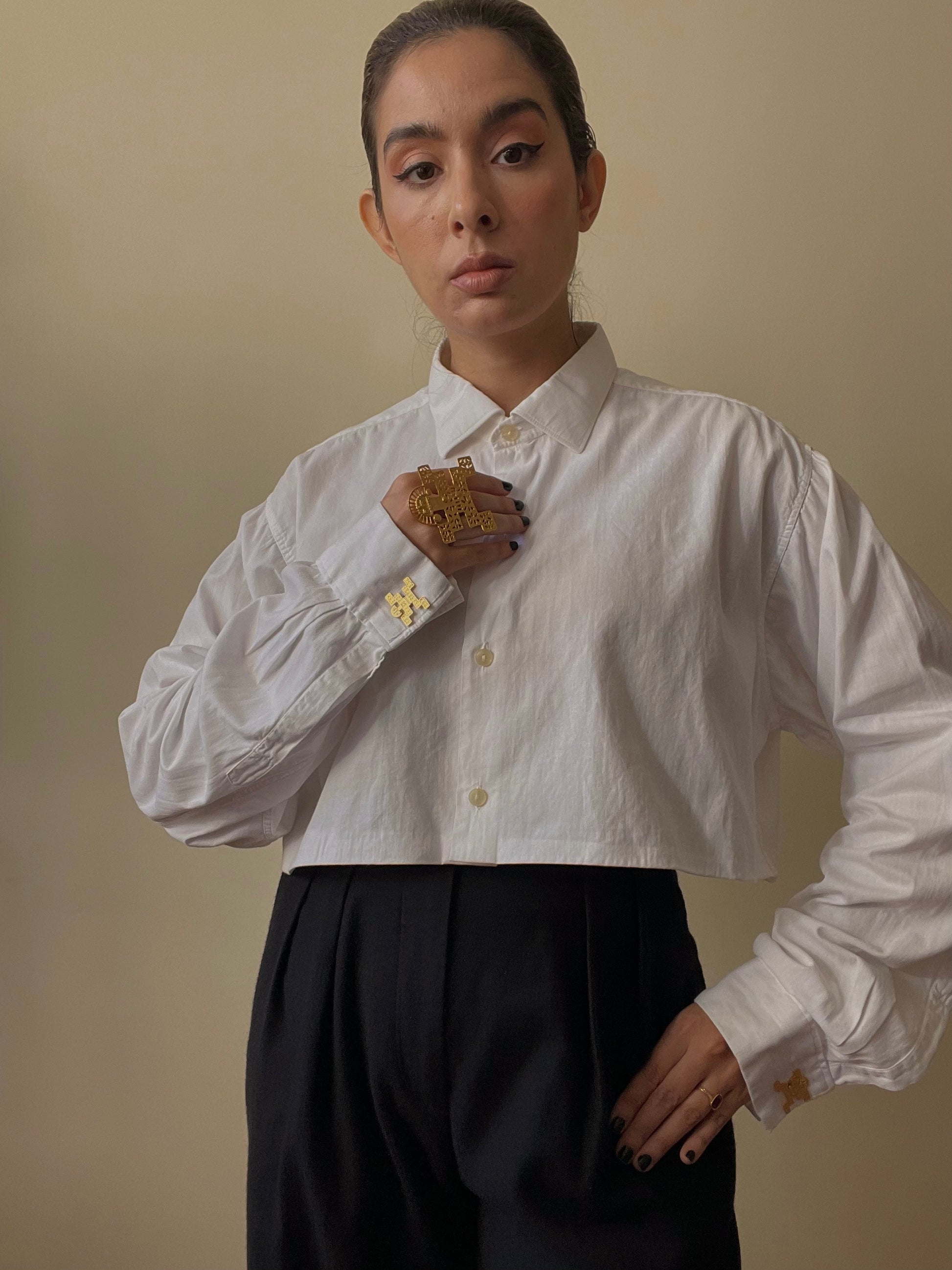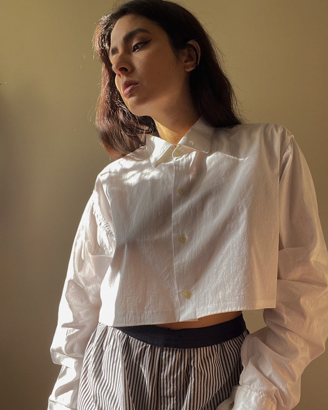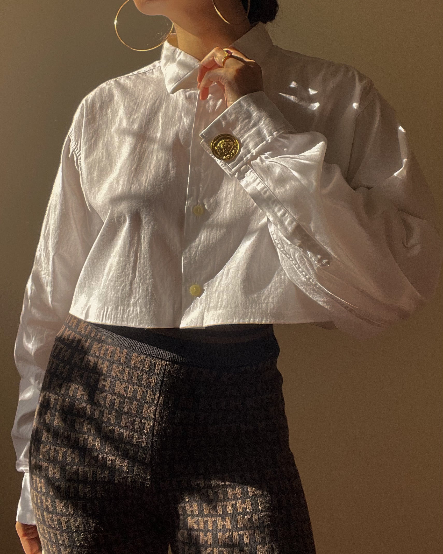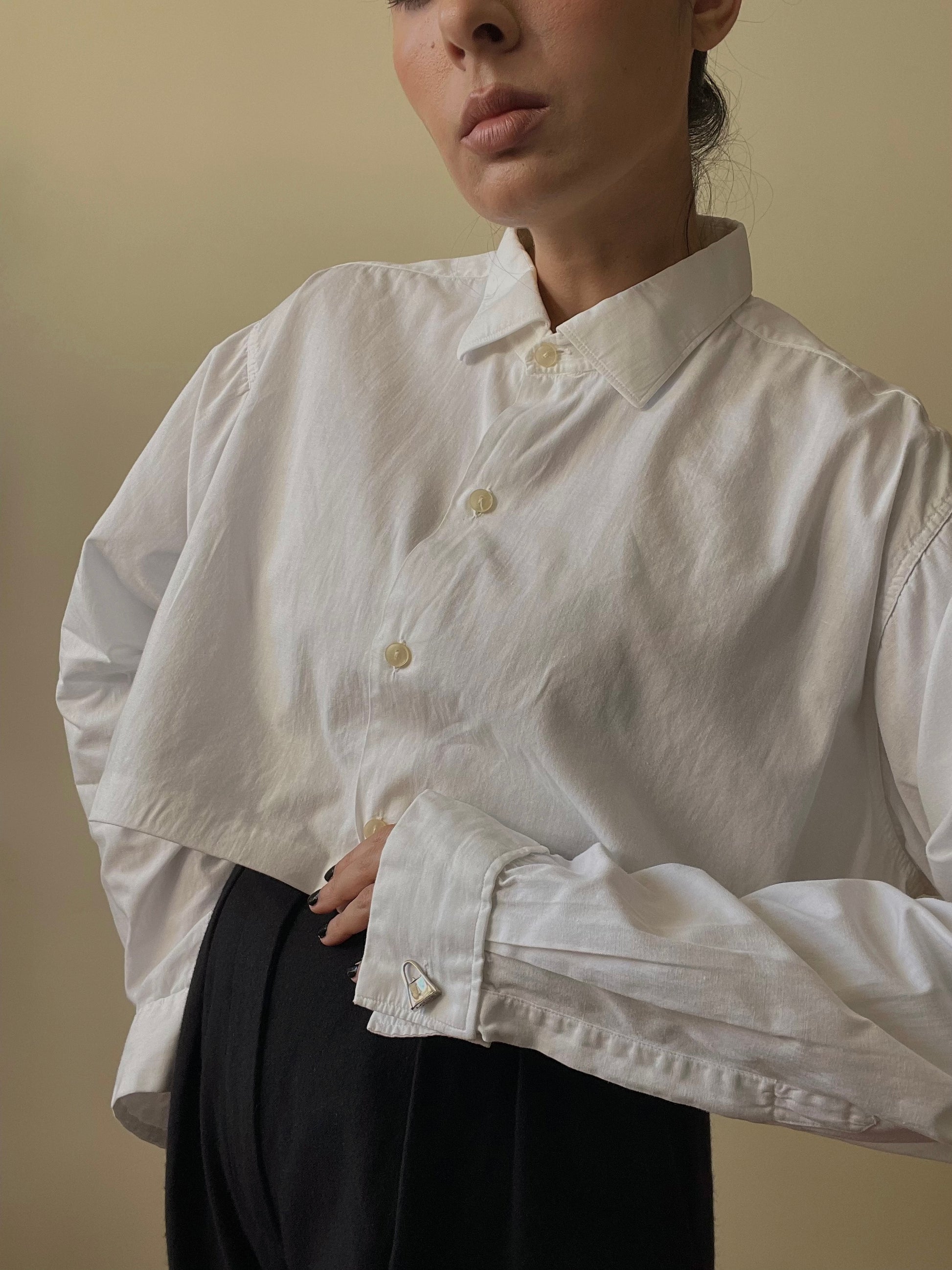 Vintage Collared Mens Dress Shirt With Cropped Hem stitched by Hand And Cufflink Sleeves.